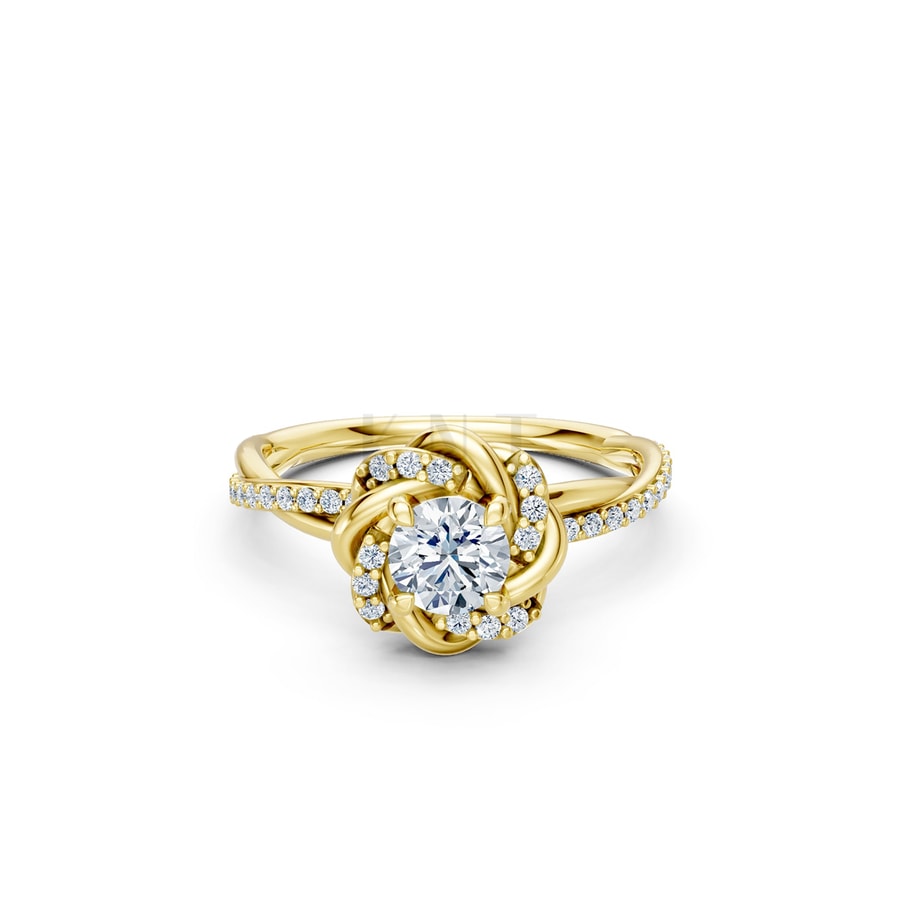 | Kiểu dáng | Nhẫn cầu hôn thiết kế ổ đá hình hoa nở, thân nhẫn xoắn (một dải trơn/ một dải nạm đá) |