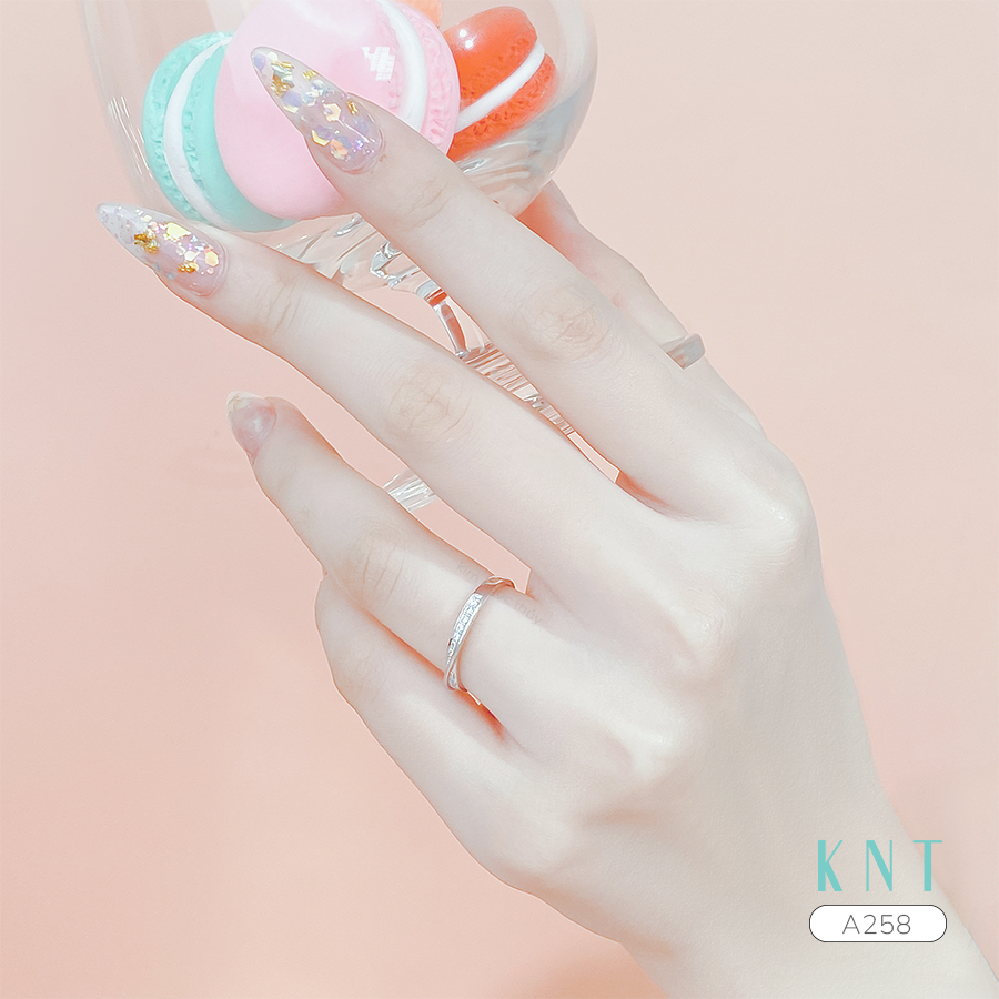 Sở hữu phong cách hiện đại (Modern) pha chút phá cách, Nhẫn cưới A258 gây ấn tượng mạnh bởi thiết kế đai nhẫn dạng xoắn (Twist) đầy nghệ thuật. Thay vì đai tròn trơn truyền thống, cặp nhẫn được tạo tác với những đường lượn sóng mềm mại, đan chéo vào nhau tạo hiệu ứng thị giác 3D sống động, tựa như hai dải lụa đang quấn quýt không rời.