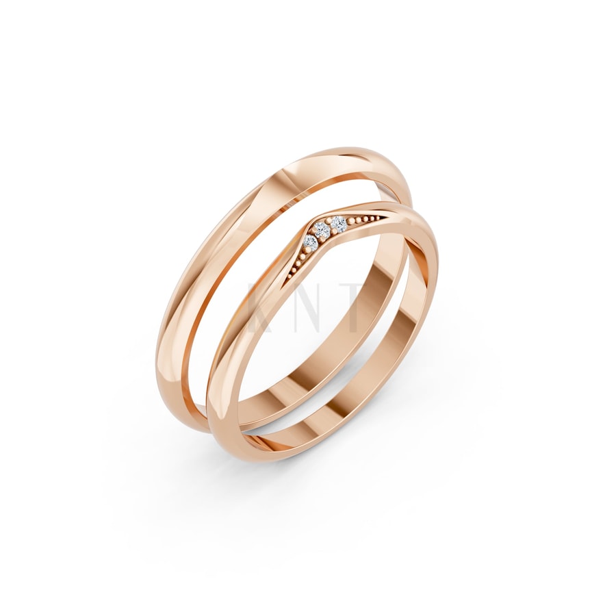 Mẫu nhẫn cưới H102 sở hữu phong cách thiết kế hiện đại với những đường cong mềm mại, phá cách so với kiểu dáng nhẫn tròn truyền thống. Điểm nhấn đặc biệt nằm ở sự tương đồng nhưng vẫn giữ nét riêng biệt cho từng chiếc nhẫn: